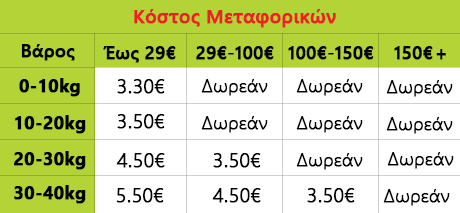 Δωρεάν Μεταφορικά: Άνω των 29€ και έως 20kg