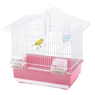 Κλουβί για καναρίνια, κατασκευασμένο από μεταλλικό πλέγμα. Διαθέτει καλαμάκια, ποτίστρα και ταΐστρες για άνετη διαβίωση των πτηνών.
