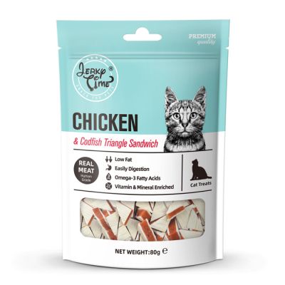 Νόστιμες λιχουδιές για γάτες με γεύση κοτόπουλου και μπακαλιάρου. Οι τραγανές τριγωνικές λιχουδιές προσφέρουν υψηλή περιεκτικότητα σε πρωτεΐνη και είναι ιδανικές για επιβράβευση ή ως σνακ κατά τη διάρκεια της ημέρας. Το πακέτο των 80 g εξασφαλίζει φρεσκάδα και ευκολία στη φύλαξη. Είναι το τέλειο σνακ για τη γάτα σας.