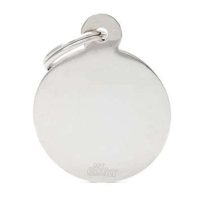 Κομψή μεταλλική ταυτότητα σε σχήμα κύκλου, με δυνατότητα χάραξης των στοιχείων της επιλογής σας. Συνδυάζει ασφάλεια και στυλ, προσφέροντας πρακτικότητα και μοναδική εμφάνιση στις καθημερινές σας βόλτες.